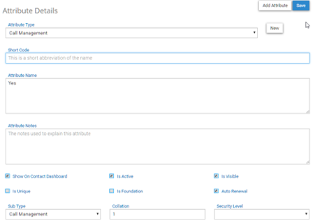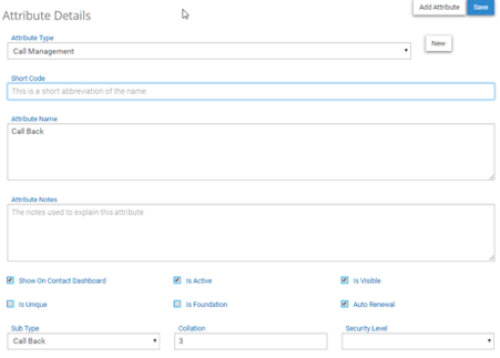 Attribute Sub-Types control the impact of attributes. Call Management is the Attribute Type and Call Back is one Sub-Type that generates Call Back behaviour. Other sub-types remove the call from the active list.